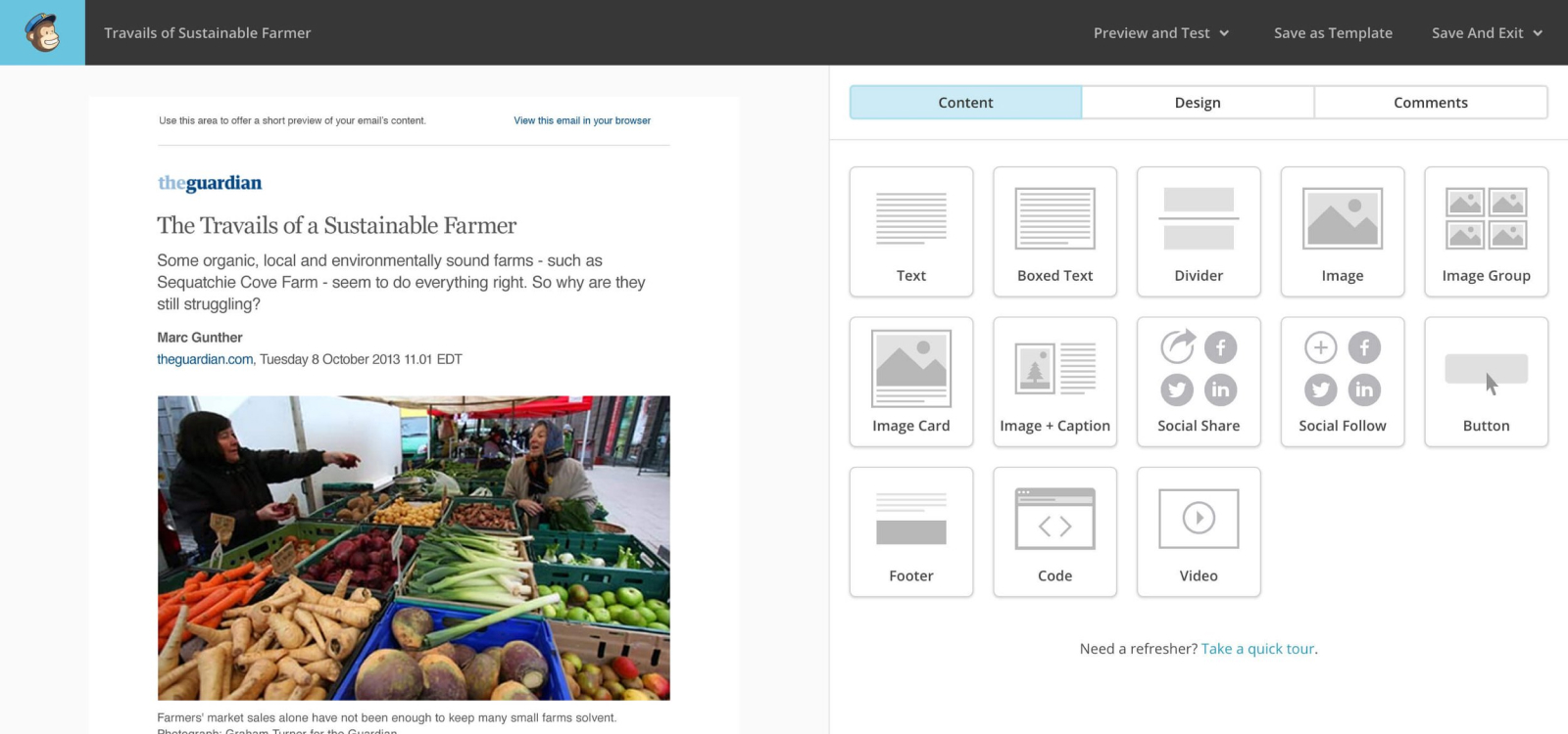Read my Mailchimp blog post about the new editor. (Internet Archive)